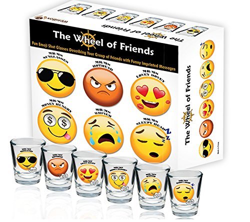 Make your drink nights ones to remember Do you want to make your drinking nights with your friends ones to remember? Excellent. These shot glasses with funny messages are perfect for that. In any group, there are people of different characters and these shot glasses captures these personalities perfectly. The shot glass set contains 6 glasses. Each glass has an emoji printed on it and a fun message that represent different characters for different people. The name on the box is ‘My Friends and I’ which goes on to bring out this diversity, Here are the writings on the glasses: - Mr/Ms. Hothead: Seriously, this is my happy face (one who is always angry)