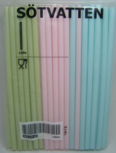 -. Title : IKEA SOTVATTEN Smoothie Straw. Beautiful Colors of Light Green, Light Blue, and Light Pink, Set of 2