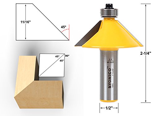 Yonico 13508 5 Bit Chamfer Router Bit Set with 11.25-Degree 15-Degree 22.5-Degree 30-Degree 45-Degree 1/2-Inch Shank