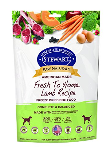 -. Binding : Misc. -. Brand : Stewart -. EAN : 0073101027658 -. Feature : 3.25 ounce - Trial Size - Sourced and Made in the U.S.A. / Meat based diet with lamb being #1 ingredient / grain free, gluten free without artifical preservatives or colors / High in protein, low in carbs to promote a lean healthy body / Minimally processed to retain purity of nutrients with only USDA ingredients in an approved facility -. Label : Gimborn Pet Specialties -. Manufacturer : Gimborn Pet Specialties -. Model : 402765 -. MPN : 402765 -. NumberOfItems : 1 -. PackageQuantity : 1 -. PartNumber : 402765 -. ProductGroup : Pet Products -. ProductTypeName : PET_SUPPLIES -. Publisher : Gimborn Pet Specialties -. Size : 3.25 oz -. Studio : Gimborn Pet Specialties -. Title : Stewart Raw Naturals Fresh To Home Freeze Dried Dog Food -. UPC : 073101027658