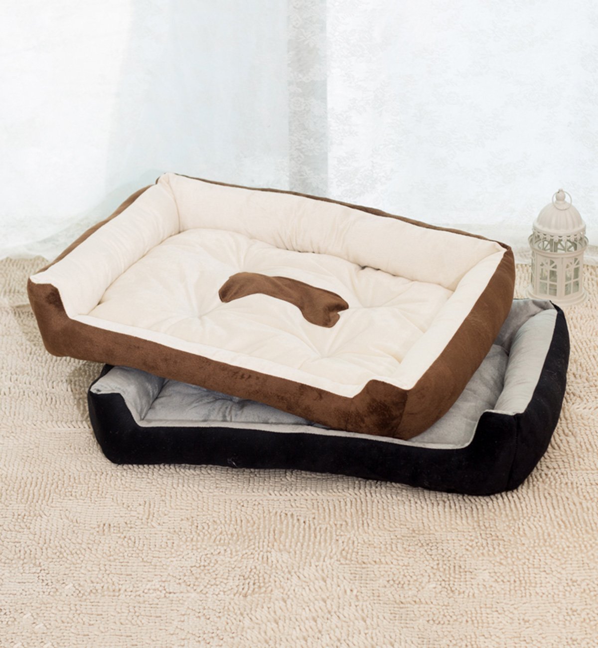 An open cushion-shaped bed is perfect for loving dogs and loving cats that love to go to bed.