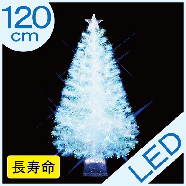 葉先が光るファイバーツリーにブルーLED球をセットしたクリスマスツリーです。LED球は点滅・常点の切り替えができます。サイズ 直径60cm×高さ120cm梱包  1個口外箱  20cm×20cm×118cm