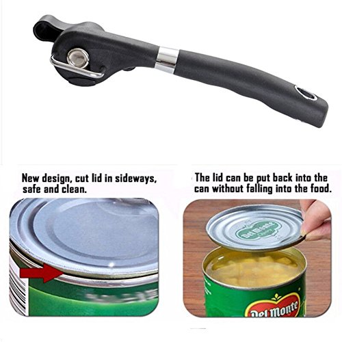 PRETTY GIFT: This side cutting safety can opener is quite simple to operate. The combination of the big knob, long ergonomic silicon handle, and sharp cutting wheel makes opening cans an effortless task, even for senior citizen with weak hands from arthritis and wrist problems. Since the cutting discs don't touch the food in the can, so cleaning is the easiest thing ever! just put it under running tap water then leave it dry.
