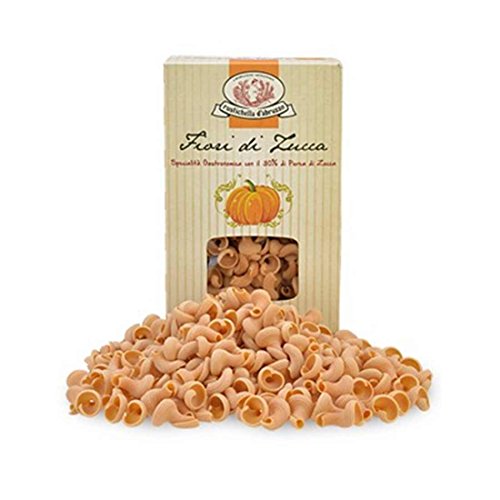-. Feature : Rusitchella d'Abruzzo - Abruzzo, Italy / Fior di Zuca - Pumpkin Torchio Pasta / Made 30% pumpkin puree and durum wheat semolina / A perfect rich and earthy side dish for the fall! / 500 Grams (1.1 lb) Box