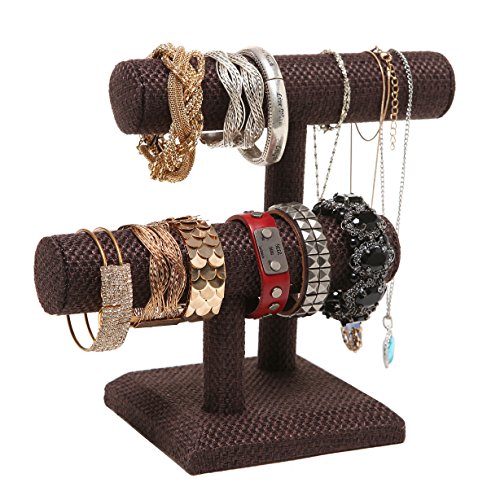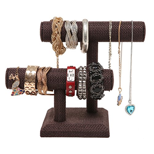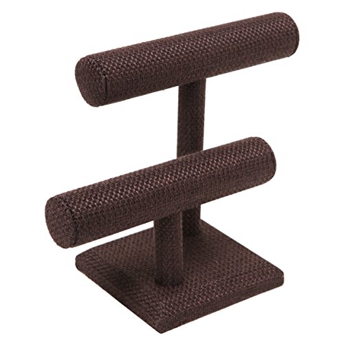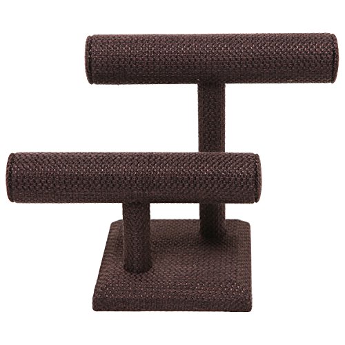 2 Tier Brown Woven Designer Series T-Bar Bracelet Watch Jewelry Stand Display