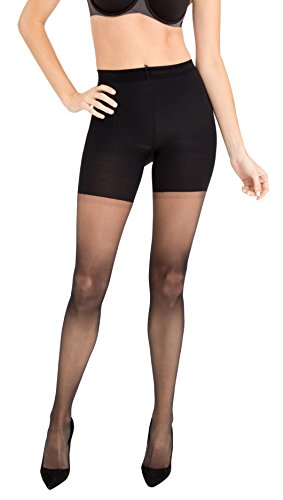 -. Feature : Experience luxe firm control in these shaping pantyhose / Sleek built-in shaper sculpts tummy, hips, thighs and rear / Soft-touch, 3D yarn construction with amazing stretch & recovery / Luxurious leg offers a comfortable all day fit and invisible look / 15 denier, ultra-sheer stretch nylon with cotton blend gusset