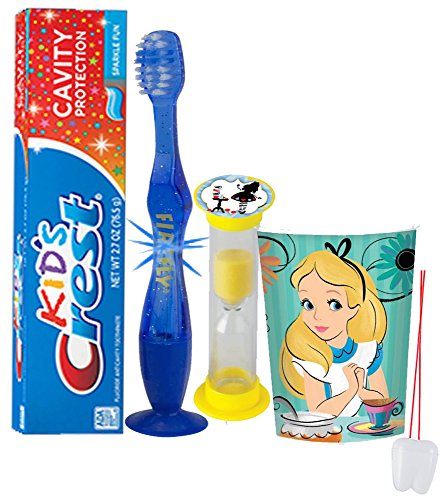 -. Feature : Turn something your kids have to do into something they want to do with the help of Shimmer & Shine...Because when brushing is fun, it gets done! / (1) Firefly Youth Flashing Lights Suction Cup Toothbrush (Assorted Colors) (1) Kids Crest Cavity Protection Sparkle Fun Toothpaste, 2.7 oz / (1) Alice In Wonderland Themed 16oz Plastic Mouthwash Rinse Cup, Doubles As Toothbrush Holder! / (1) Dentist Recommended 2 Minute Alice In Wonderland Themed Brushing Timer (Assorted Styles) / Plus Bonus "Remember to Brush" Visual Aid Tooth Saver Necklace. Hang it in their bathroom or by their bed so they remember to keep their chompers sparkly fresh. You could also use these tooth charms to save one of your child's baby teeth.