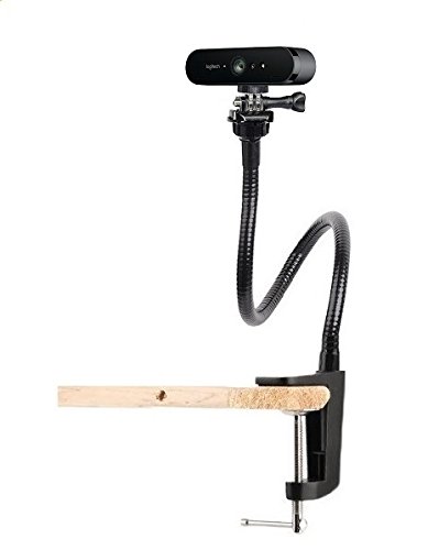 The mount adapter on the clamp is designed for webcam,card camera, action camera, Security camera, it is a good friend for your webcam. Features: You can swivel and bend it any way you like and be confident it will remain in position. The clamp allows you to clip it to most light stands, pipes or board ect. The jaw of the clamp features a soft cushion that will help protect item surfaces, such as the surface of light stand. The jaw of the clamp fit the Desk,Table,Sideboard Max thickness 5.6cm (2.2 inches) 360° rotatable head design allows you to take pictures from different directions. Made of high quality metal, strong and durable enough for long time daily use. Specifications: Color: Black Main Material: Metal plastic Item Weight: Approx.441g / 15.6oz Item Length: Approx.64cm / 25inches Max load weight 0.5 kg (1.1 lb) Package Weight: Approx.462g / 16.3oz Suitable: For Logitech Webcam C925e C9922x C922 C930e C930 C920 C615; Logitech Brio 4K; Microsoft LifeCam Studio 1080p HD Webcam; NetGear Arlo,Arlo pro,Arlo go Security camera; Any Webcam with standard 1/4 screw hole; Package List: 1 * Bracket Clamp 1 * Quick Release Buckle 1 * Long Screw 1 * 1/4 screw thread adapter 0