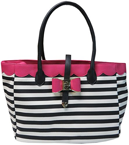 Betsey Johnson Bag in a Bag Shopper Bone/Black/Fushia