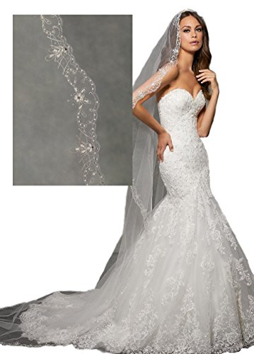 Passat 3 Colors Single-Tier 2M/3M Cathedral Wedding Bridal Veil Mantilla with Embroidery, Beade...