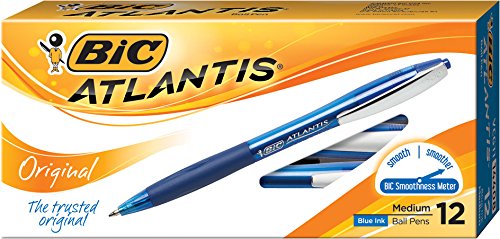 BIC Atlantis Original Retractable Ball Pen, Medium Point (1.0 mm), Blue, 12-Count