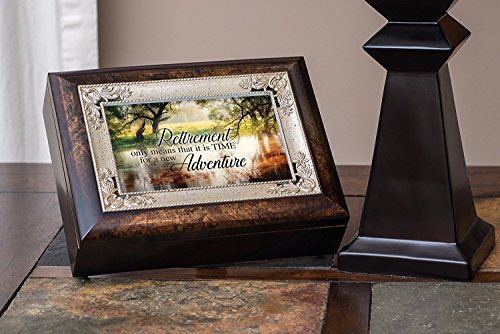 Beautiful Italian inspired design with a rich burlwood finish and silver color inlay photo frame lid - You can replace picture with 4x6 inch personal photo