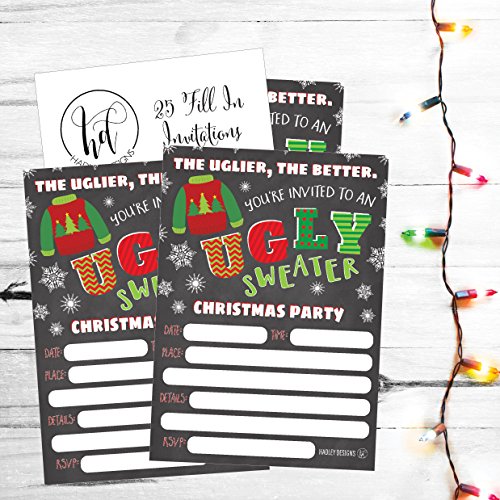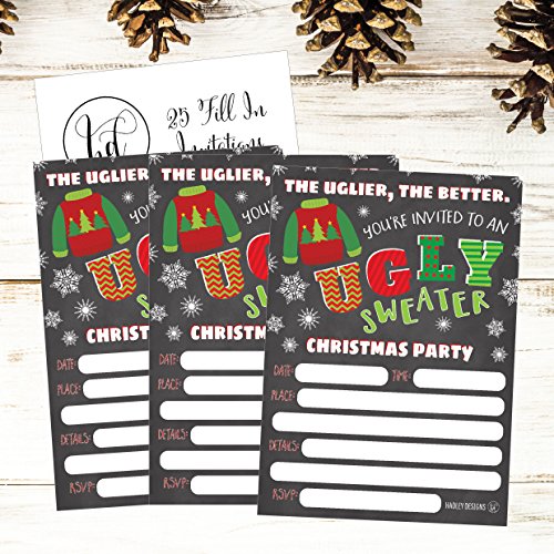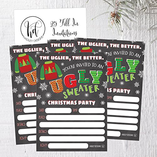 Why should you order your own Ugly Sweater Party fill in invitations? · Durable - Printed on Premium Cardstock · Easy to write on · One of a kind design · Generous 5 x 7 invitation size allows plenty of room for you to fill in the details · Designed and Made in the USA · Impress your guests with a beautiful invitation · 100% Money Back Guarantee BONUS - The 5x7 event invitation provides much more room to write your event details on rather than a 4x6 size. PLUS, the back is left blank for you to write additional notes and directions! Use them as Christmas winter holiday wedding invitations, party invitations, , dinner party invitations, birthday party bachelorette party invitations, family reunion invitations and More! Why choose Hadley Design's Invitations? · Hadley Design's fill in the blank invitations are a customer favorite! · They are unique and different from the mass produced invitations. · It's the personal touch that make Hadley Designs invitations special. · Each invitation is handcrafted on heavy-weight extra smooth cardstock. · You will receive an exceptional product with meticulous attention paid to every last detail 100% MONEY BACK GUARANTEE - If you aren't satisfied with your purchase or have any questions/concerns please do not hesitate to get in contact with us, we are here to help you. If you aren't happy with your purchase we offer a 100% MONEY BACK GUARANTEE, so your purchase is TOTALLY RISK FREE! ADD TO CART NOW AND BUY TODAY! envelopes are NOT INCLUDED, but easily fit any A7 envelope. 0 |