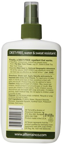 All Terrain Herbal Armor Natural Insect Repellent Family Size Description: Natural Safe and Proven Effective Awarded Best Gear Cruelty Free DEET-Free Pump Spray Water and Sweat Resistance Finally a DEET-Free repellent that works. Deerflies mosquitoes everything stayed away" From The New York Times July 27 2006 2006 The New York Times Awarded Best Gear by National Geographic Adventure "Of all the natural DEET-free bug repellents none that we tried was as effective as Herbal Armor." (Jan. 2006) Disclaimer These statements have not been evaluated by the FDA. These products are not intended to diagnose treat cure or prevent any disease.Ingredients : DEET-Free Herbal Armor Insect Repellents use six natural repelling oils in over 25% concentration. They have been proven 100% effective for two hours and 95.8% for three. Allergy tested and proven non-irritating the Herbal Armor repellents are good for kids and those with sensitive skin. The time-released encapsulation helps make them sweat resistant for active lifestyles.Country of origin : USASize : 8 FZPack of : 1Product Selling Unit : each