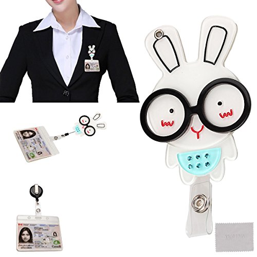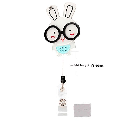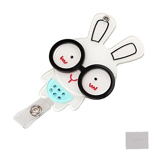 xhorizon ™ Fashionable Hot Blue Rabbit Bunny Wearing Glasses Cute Lovely Adorable ID/IC Badge Belt Clip Reel Flexible Retractable Holder ZA5