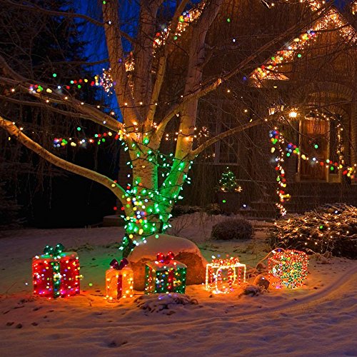 - With a beautiful Red Yellow Blue Green multi color, the Christmas lights can be controlled remotely with 10 brightness levels with multi-function remote controller. Also includes 3 different modes for adjustable settings: flash / strobe / fade.