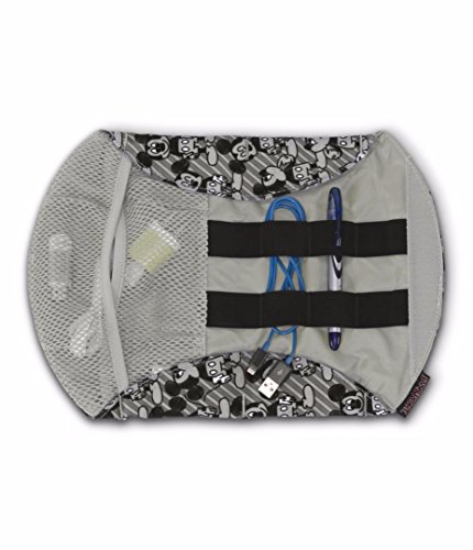 JanSport x Disney Mickey digital burrito pouch. Innovative wrap style accessory pouch securely stores electronic cords, power bricks and daily essentials. Internal mesh pocket. Elastic power cord loops. Approx. dimensions: 13.5" x 9.25" x 0.8"(34.5cm x 23.5cm x 2 cm). Capacity: 3 cu. in. Imported.
