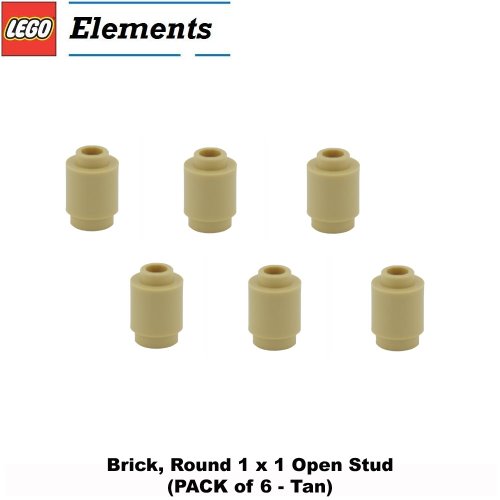 -. Title : L.E.G.O Parts: Brick, Round 1 x 1 Open Stud (PACK of 6 - Tan)