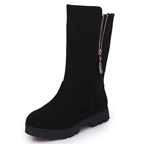 (KaiCran)/Women's/Boots/DIRECT FROM USA/KaiCran Women Winter Boots Buckle Snow Boots Warm Knight Boots Flat Martin Shoes