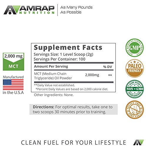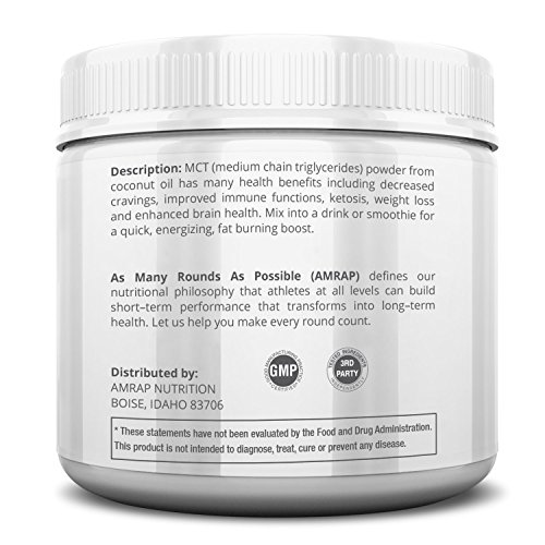 HEALTHY ENERGY AND ENHANCED FOCUS: AMRAP Nutrition MCT Powder is a pure and natural fatty acid supplement that supplies energy to the muscles, brain and heart - thus increasing endurance and boosting brain function. A great pre-workout for men and women.