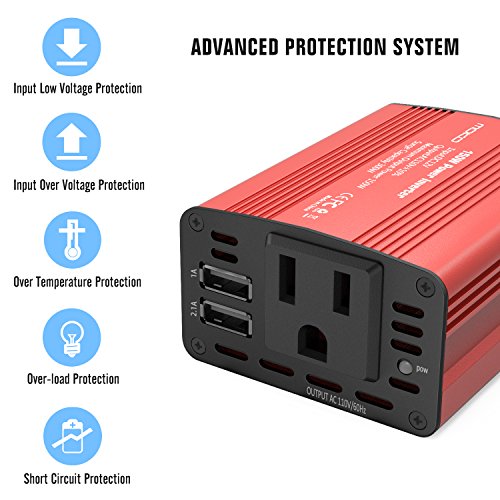 MoKo 150W Car Power Inverter, [2 USB Ports + 1 AC Outlet] DC 12V to 110V AC Converter Adapter Aluminum Alloy Battery Charger for Laptop, Tablet, Smartphone, Camera (Red)