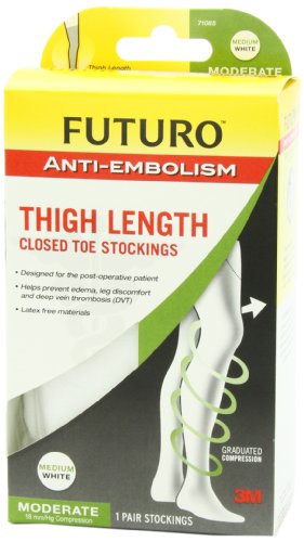 Futuro Anti-Embolism Moderate Compression Thigh Length Stockings, White