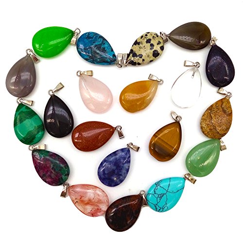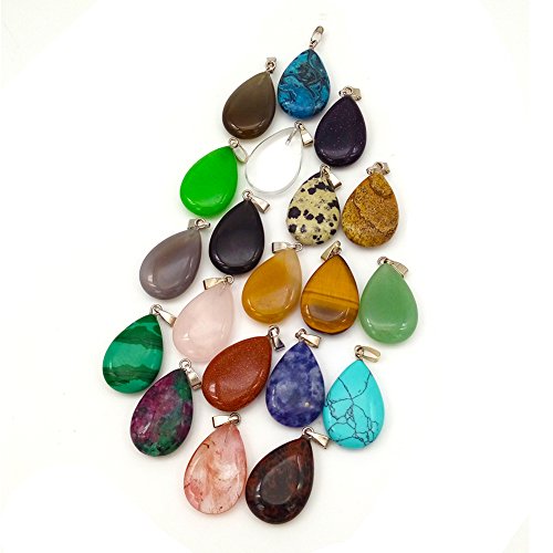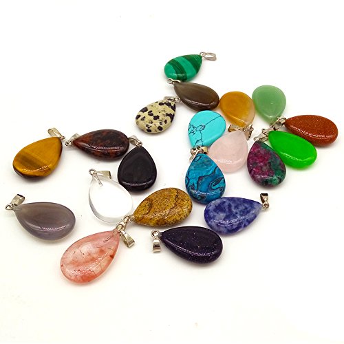 20pcs Teardrop Water Drop Shape Healing Chakra Charm Beads Crystal Quartz Stone Random Color Pendants for Necklace Jewelry Making Oval Round Gemstone DIY Earring (Water droplets)