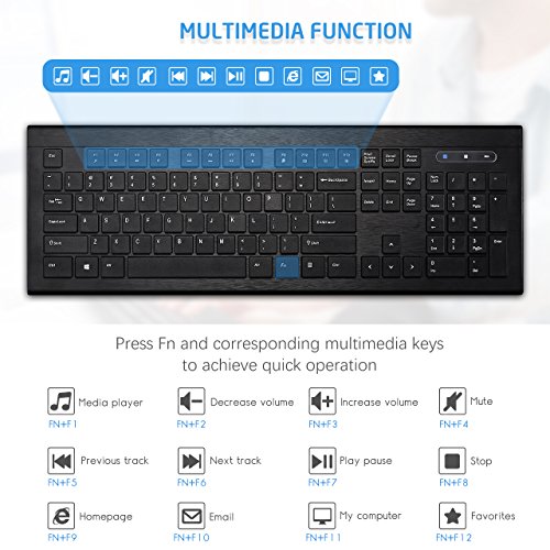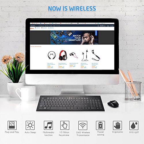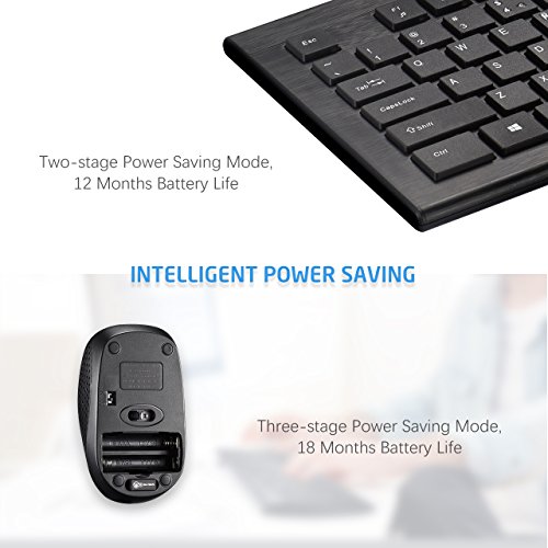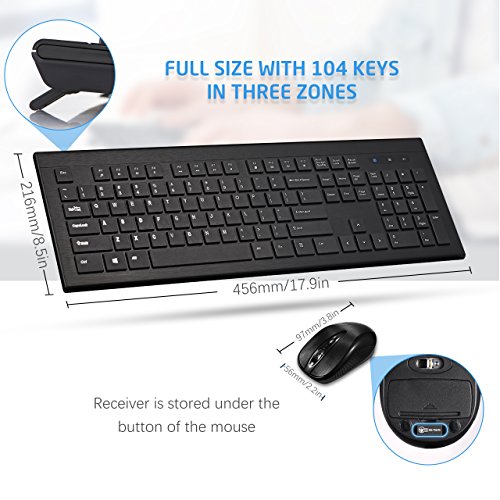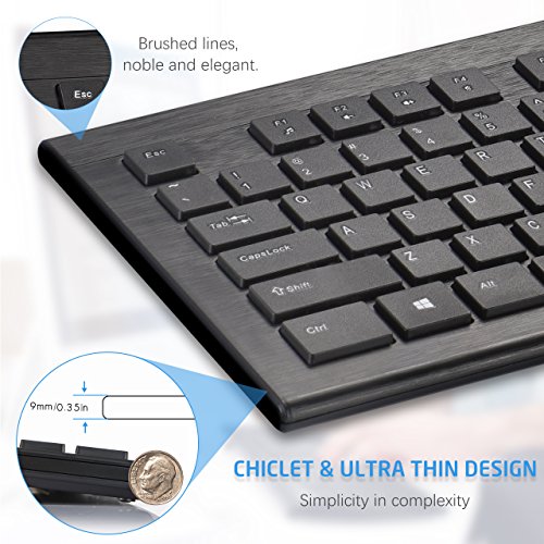 ULTRA-THIN DESIGN AND MUTE MOUSE: The thinnest part of this keyboard is only 9mm, which makes it sleek and elegant. Designed in simple business style, this keyboard comes with 104 keys in three zones (keyboard is note completely quiet) and an extra mute mouse, perfect for office use.