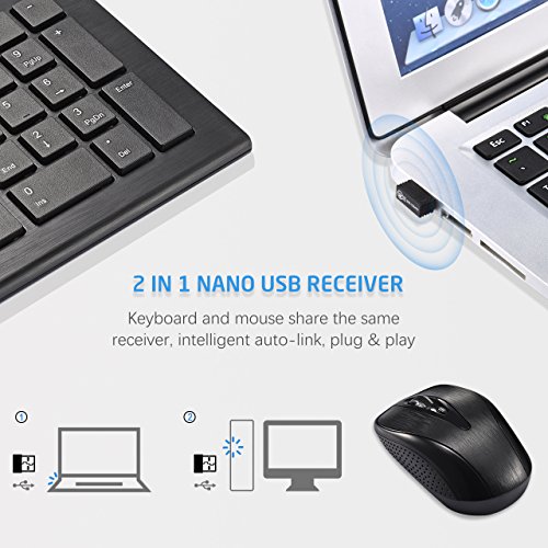 Sleek keyboard and mouse combo with low profile whisper-quiet keys delivering comfortable and smooth typing, compatible with most systems including Windows XP/7/8/10,VISTA and Mac.