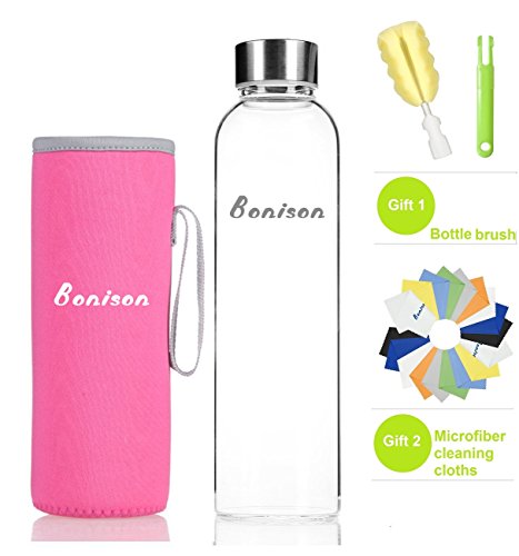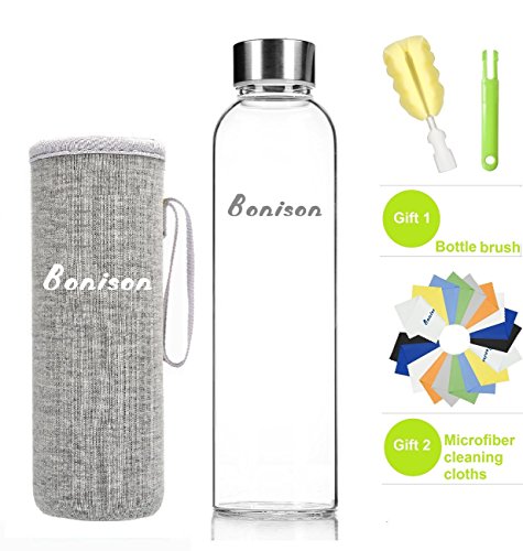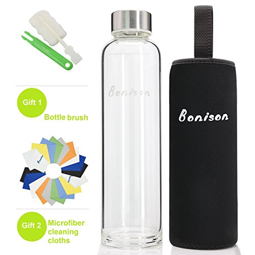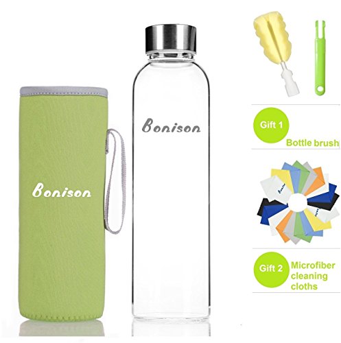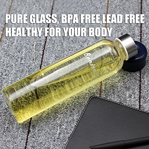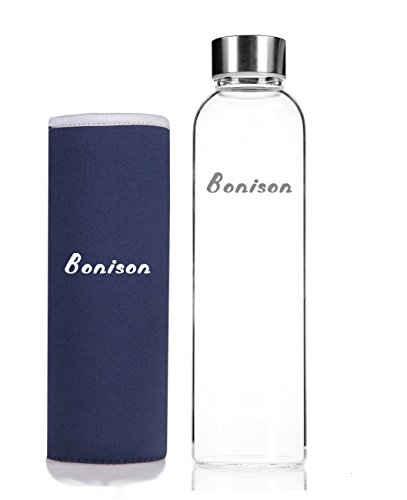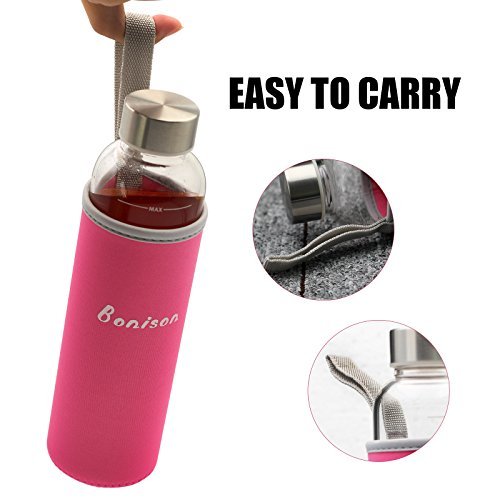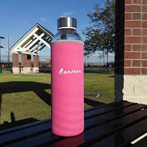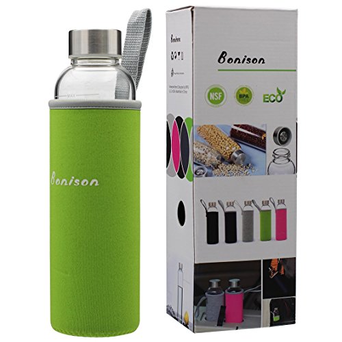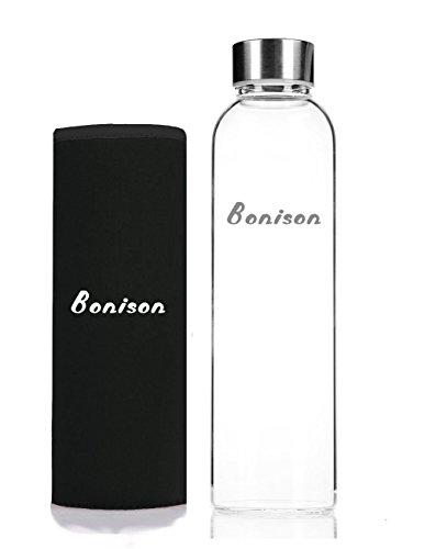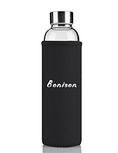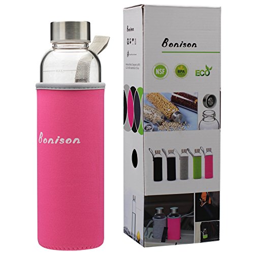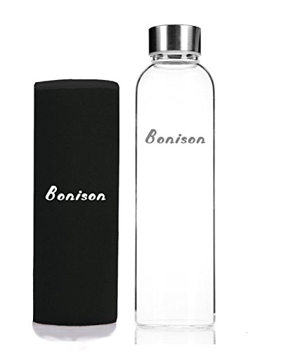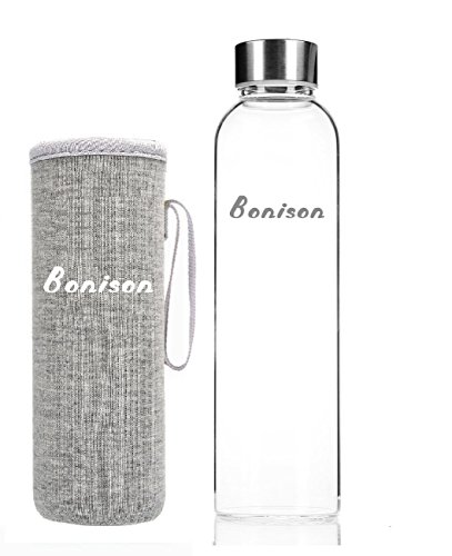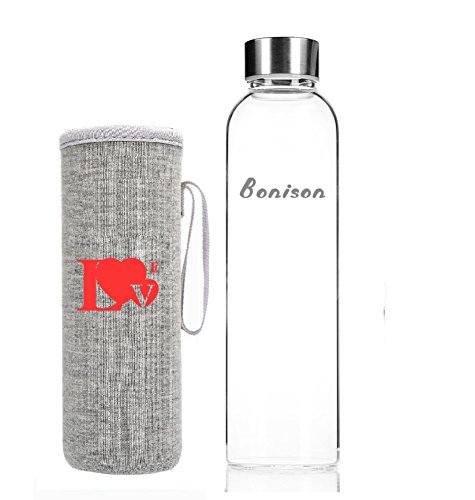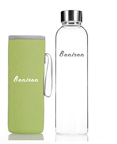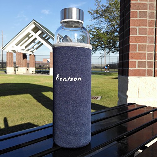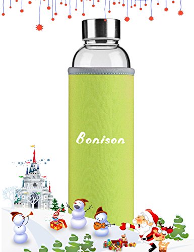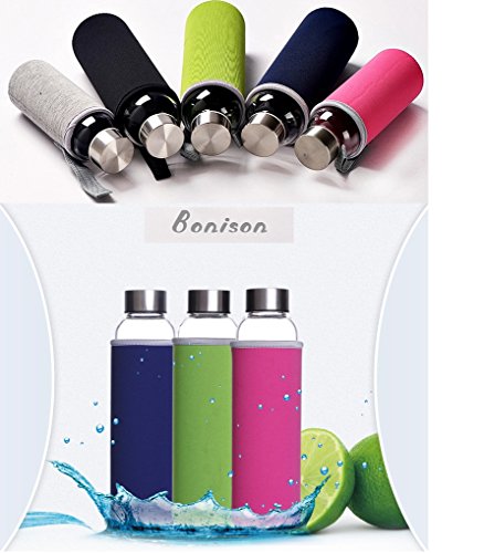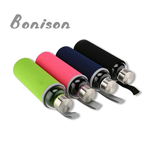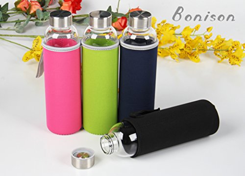 | BONISON Stylish Top Level Quality Environmental Borosilicate Glass Water Bottle with Colorful N... |