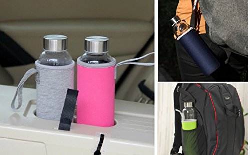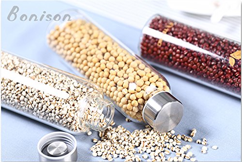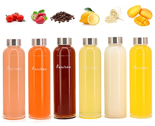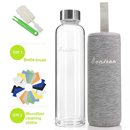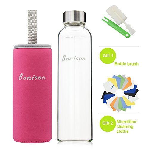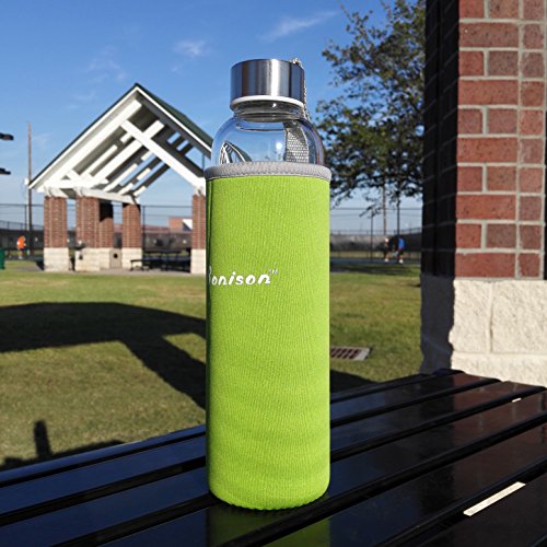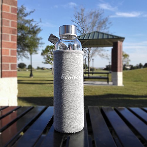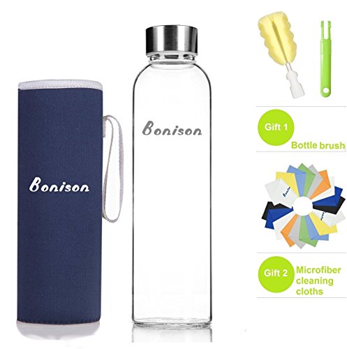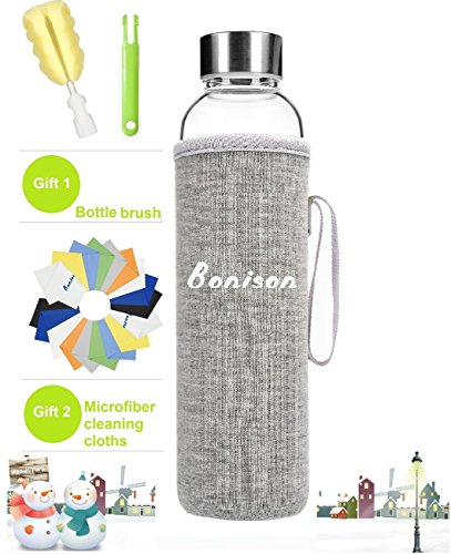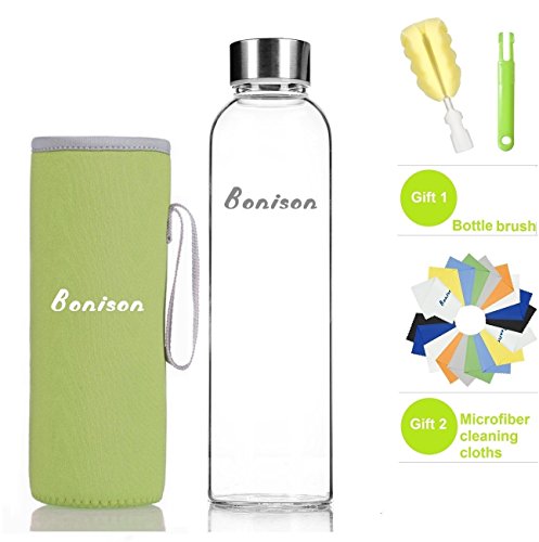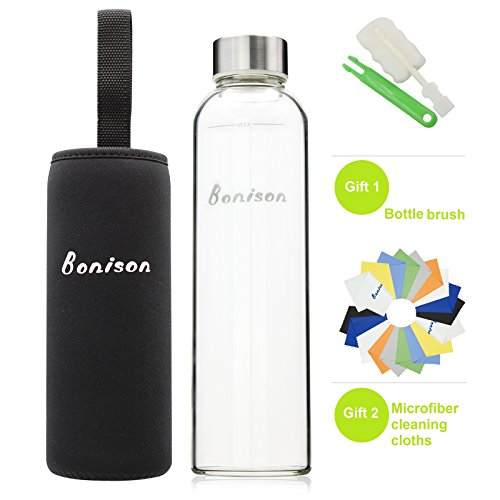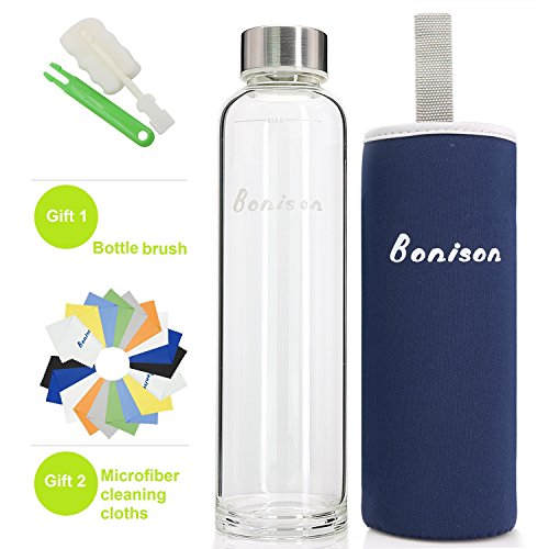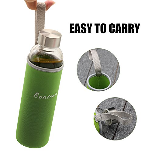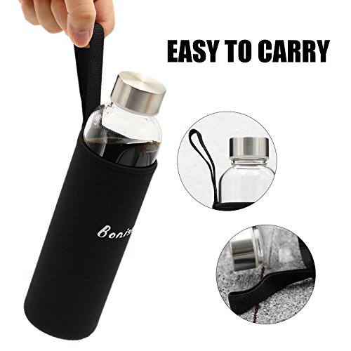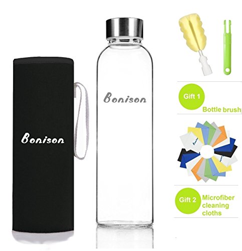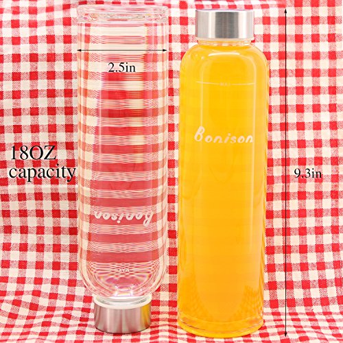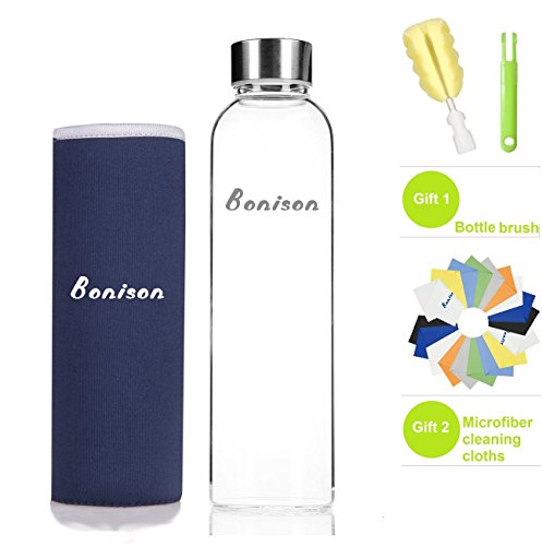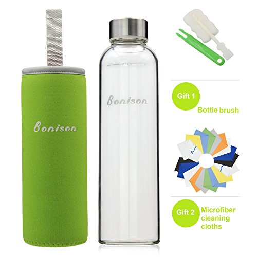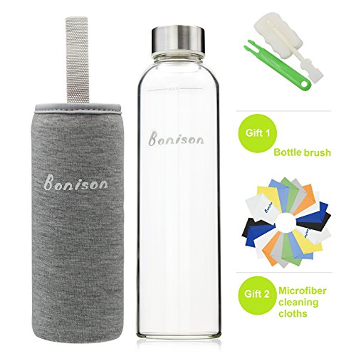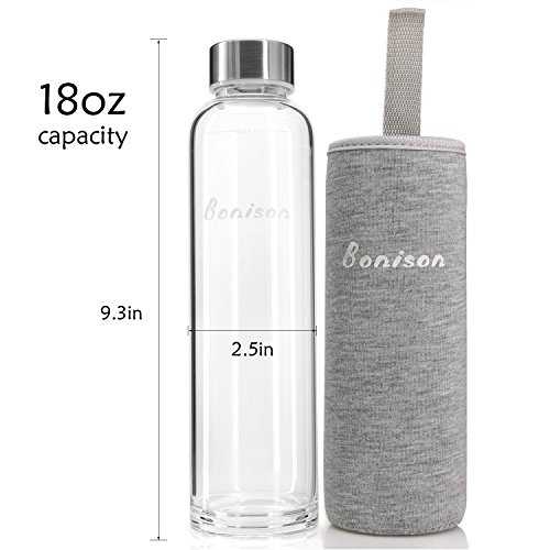| BONISON Stylish Top Level Quality Environmental Borosilicate Glass Water Bottle with Colorful N... |