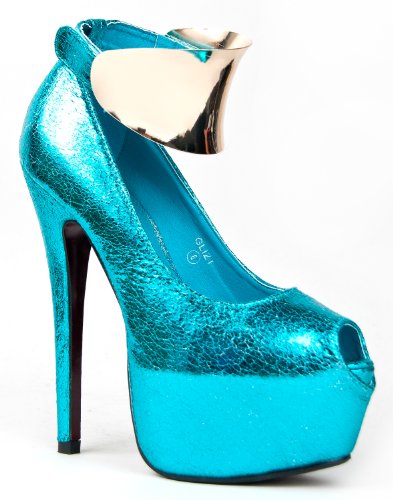Red Kiss Kouture NICOLE / GLITZ Metal Ankle Strap Platform High Heel Stiletto Pump