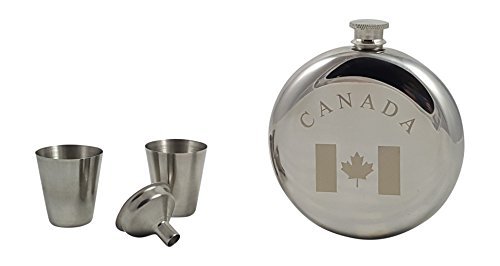 -. Feature : Looking to give a gift to a Canadian who enjoys a drink? Check out this Canada themed flask gift set. / Unique look - Stylish, round-designed flask holds 10 oz of your favorite beverage engraved with the beautiful Canadian flag and the word "Canada". / Everything you need - With two shot glasses and a funnel, you won't lose a drop of your favorite beverage. / Rust resistant - Flask is made of a specially formulated grade stainless steel to avoid rust with a polished shine. / Great gift - Give a gift that is sure to impress. Perfect for someone who enjoys a drink - family, friends, colleagues, or clients. This set is great for people with the pride for the Maple Leaf (l'Unifolié).