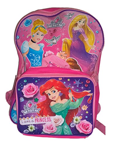DISNEY PRINCESS PINK GLITTERY "I AM A PRINCESS" BACKPACK WITH BONUS DETACHABLE LUNCH PACK