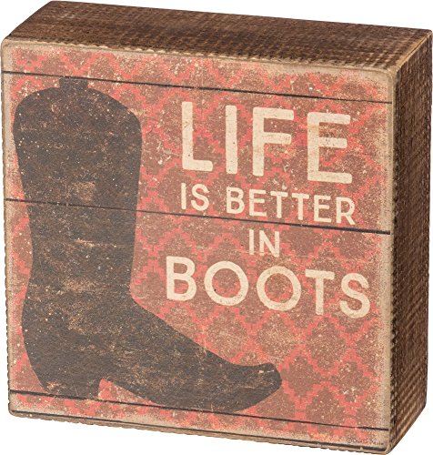Primitives by Kathy Life Is Better In Boots Box Sign 4.5" Square
