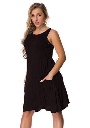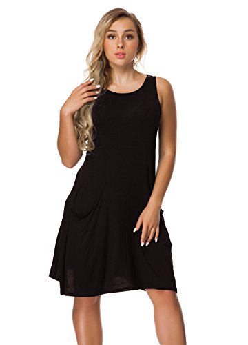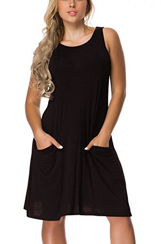 -Women's Basic Sleeveless Pocket Casual Loose Sundresses Good for Spring