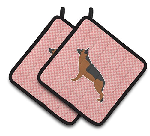 Caroline's Treasures German Shepherd Checkerboard Pink Pair of Pot Holders BB3624PTHD, 7.5HX7.5W, Multicolor
