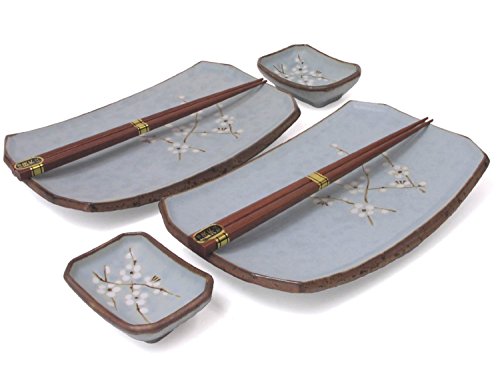 (M.V. Trading)/Kitchen Dining/Tableware/DIRECT FROM USA/Japanese Sushi Plates Set for Two with Chopsticks, Cherry Blossom