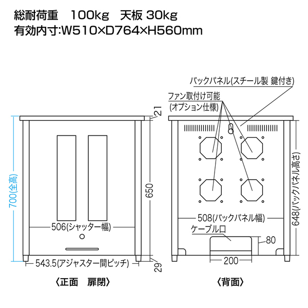 ●放熱ファンはオプションにて背面部に4個まで取り付けることができます。(CP-FANS-T、CP-SFANS-Tが対応します)