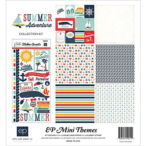 [Description] Echo Park Paper Company SW4105 Summer Adventure Theme Collection Kits_ Mini Collection Kit includes 12 12``x12`` double-sided patterned papers_ one 12``x12`` element sticker_ and one 12``x12`` alpha sticker Echo Park Paper Company