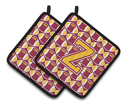 Caroline's Treasures Letter Z Football Maroon & Gold Pair of Pot Holders CJ1081-ZPTHD, 7.5HX7.5W, Multicolor