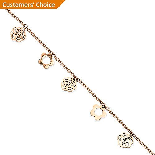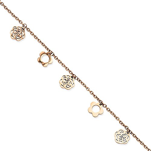 ICECARATS DESIGNER JEWELRY STAINLESS STEEL PINK PLATED FLOWERS 10.5IN ANKLET FOR WOMEN ANKLE BEACH CHAIN BRACELET