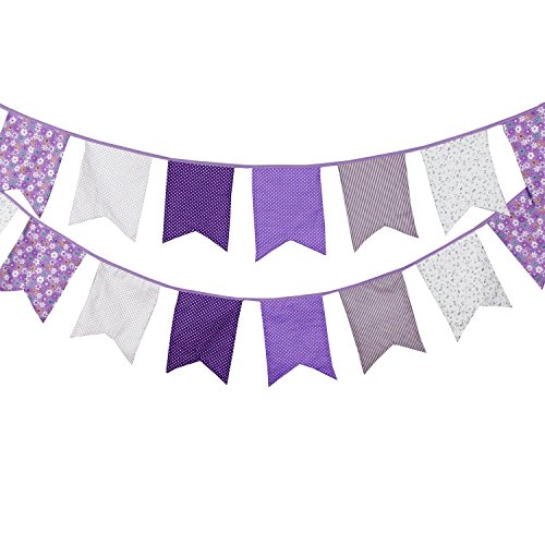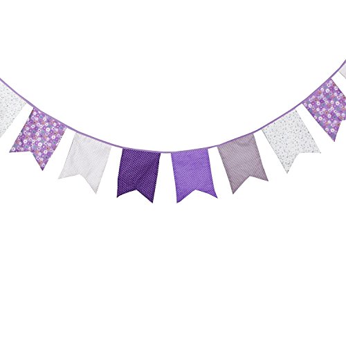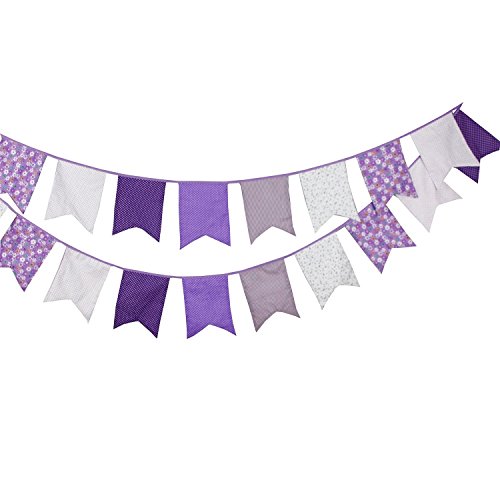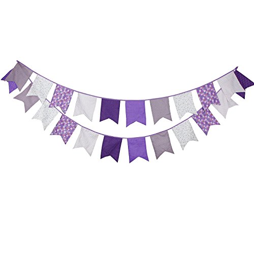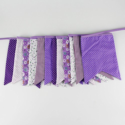-. Title : Purple Vintage Fabric Big Flag Buntings Garland Wedding Birthday Party Decoration by INFINITE HOME