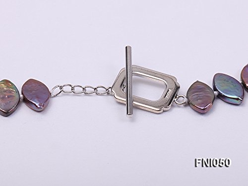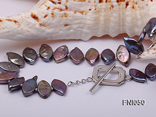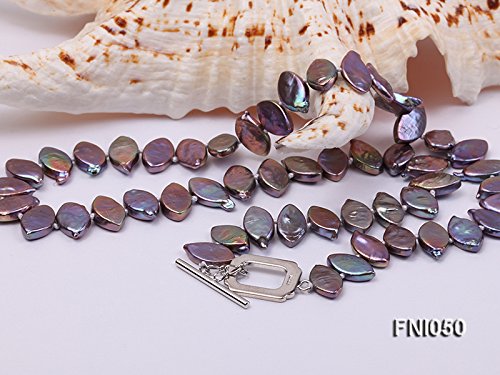 Good-looking single-strand Necklace made of 6.5x12.5mm purple Seed-shaped cultured freshwater pearls with colorful overtones. The necklace has a length of 17.5 inches and is closed by an argent gilded toggle clasp. This necklace is professionally hand-knotted between each two pearls, which makes it look nicer and protects the pearls from rubbing each other.The natural properties and process of pearl formation define the unique beauty of each pearl. The image may show slight differences in surface, color, size, and shape.Feature