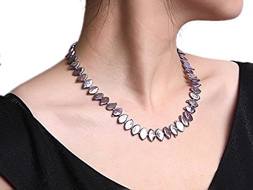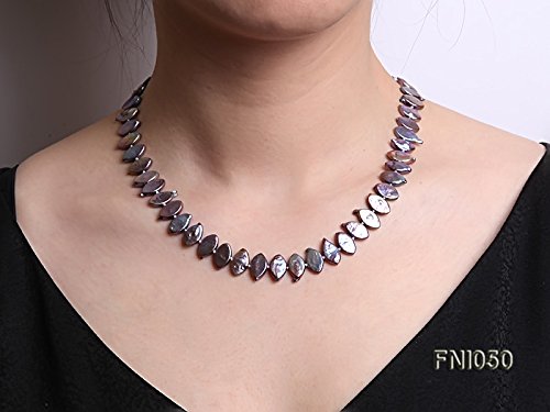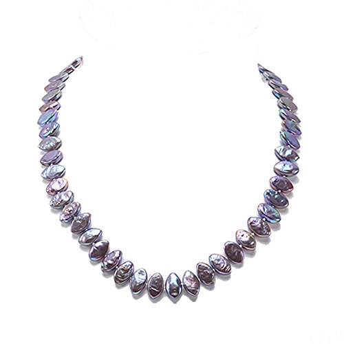 Good-looking single-strand Necklace made of 6.5x12.5mm purple Seed-shaped cultured freshwater pearls with colorful overtones.