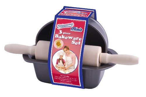 [Product Information]- 3Pc Mini Bakeware Set, Loaf Pan 5.4" x 3" x 1.2", Springform Pan 4.5" x 1.75" and a Kid sized wood rolling pin