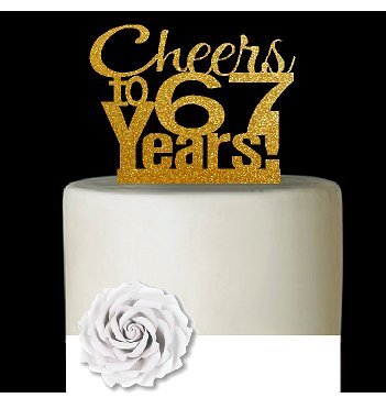 CakeSupplyShop Item#067CTA - 67th Birthday / Anniversary Cheers Super Gold Glitter Sparkle Elegant Cake Decoration Topper