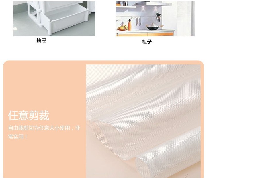 2,可随意裁切,根据抽屉、厨柜大小,自由裁切为任意大小使用。