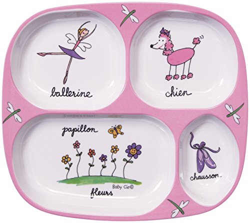 -. Feature : BPA free, Drop-proof and dishwasher safe / Not microwavable, made from melamine / Whimsical drawings with the French word