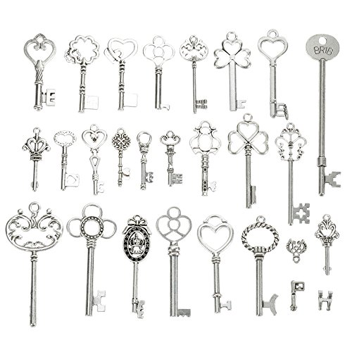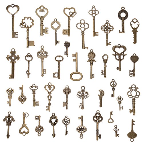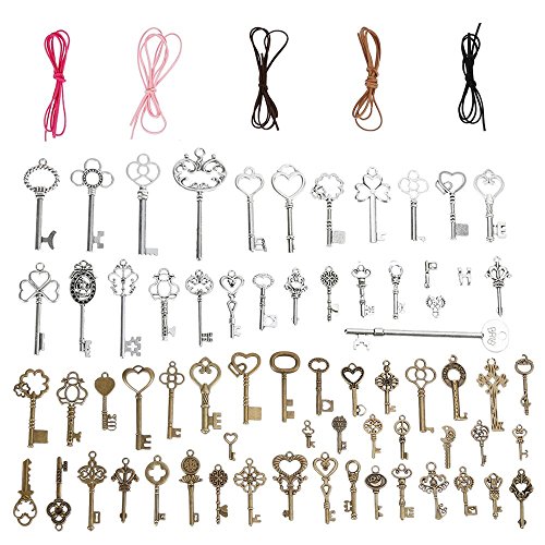 Paket beinhaltet 65 Stucke Retro Schlussel und 10 Samtseil
